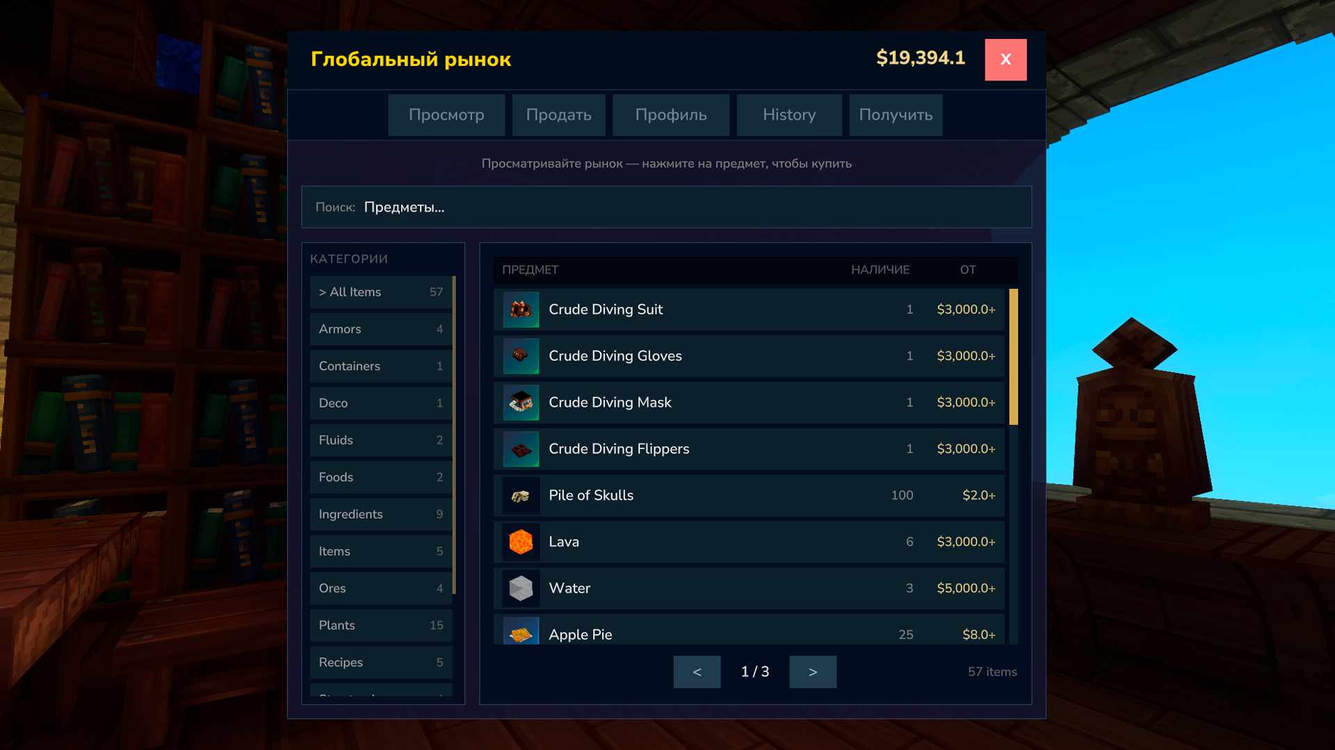 Маркет работает за игровые деньги.